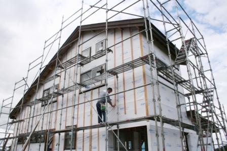 代わりに秋葉大工が現場に入り、外壁の下地を張っていました。
