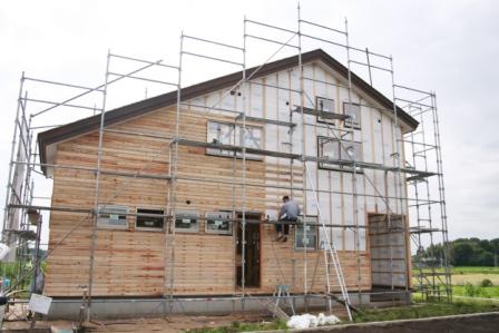 佐藤大工は中の仕事を、秋葉大工は外壁の下地張りをしていました。