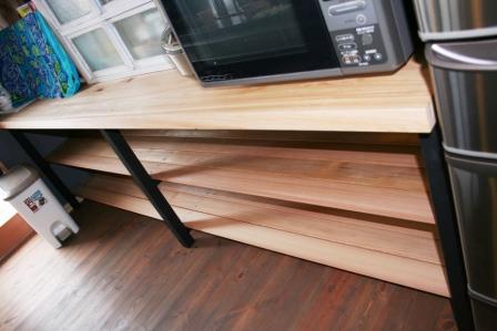 1番下と真ん中には重い鍋などを置く為、補強の材木を入れたり調整をしました。