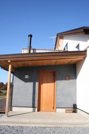 ピーキャン社ベーカーズオーブンという薪ストーブは、玄関入ってすぐのところに設置しました。