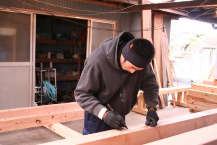 「今、大工さん達墨付けしていますよ。作業場に行ってみませんか?」