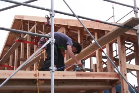 現場現場の棟梁の判断に任せているのですが、どの棟梁も本格的に降りだすまでは手を休めません。